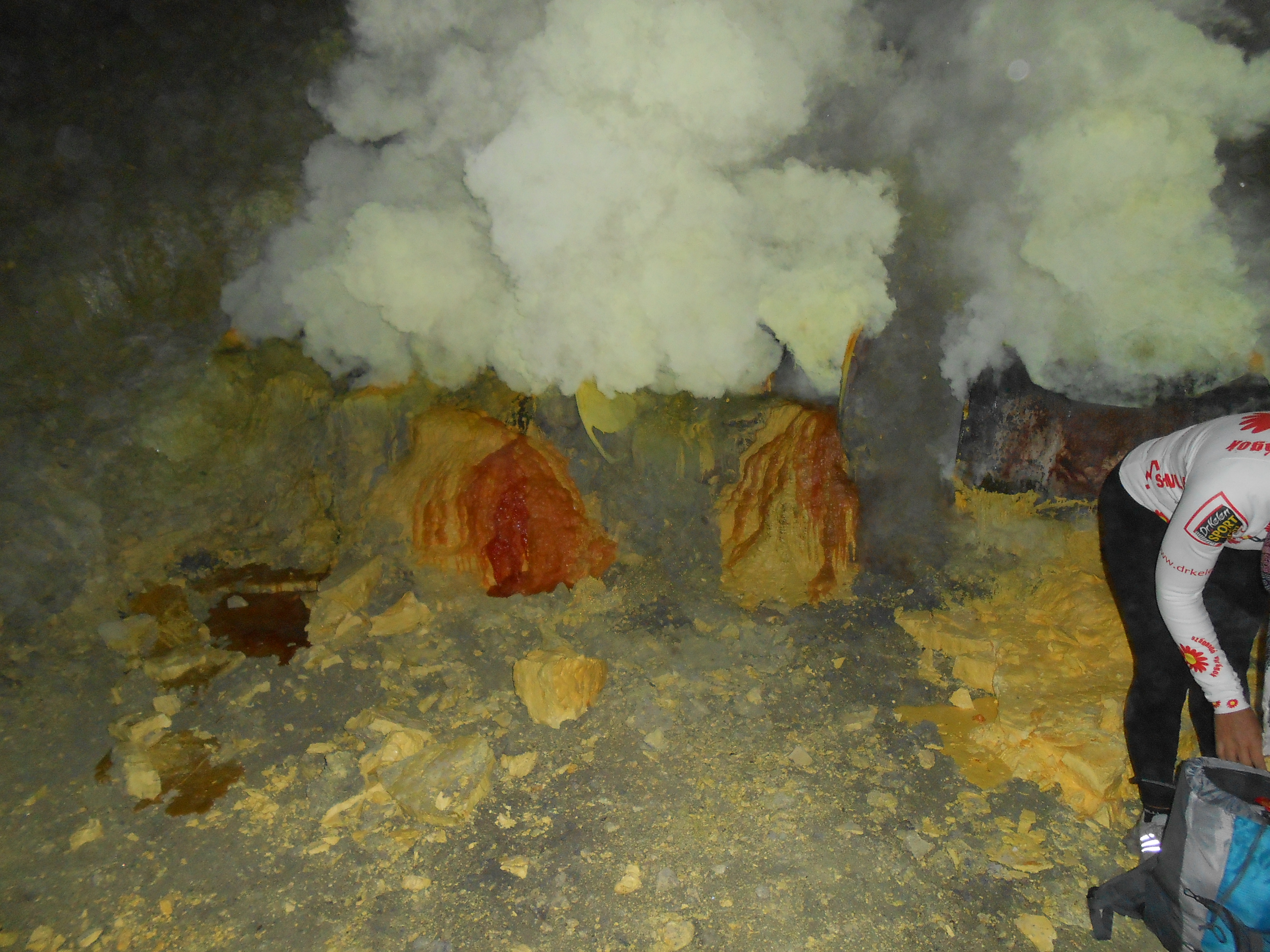 Der dichte schwefelhaltige Dampf verschlug einem den Atem. |